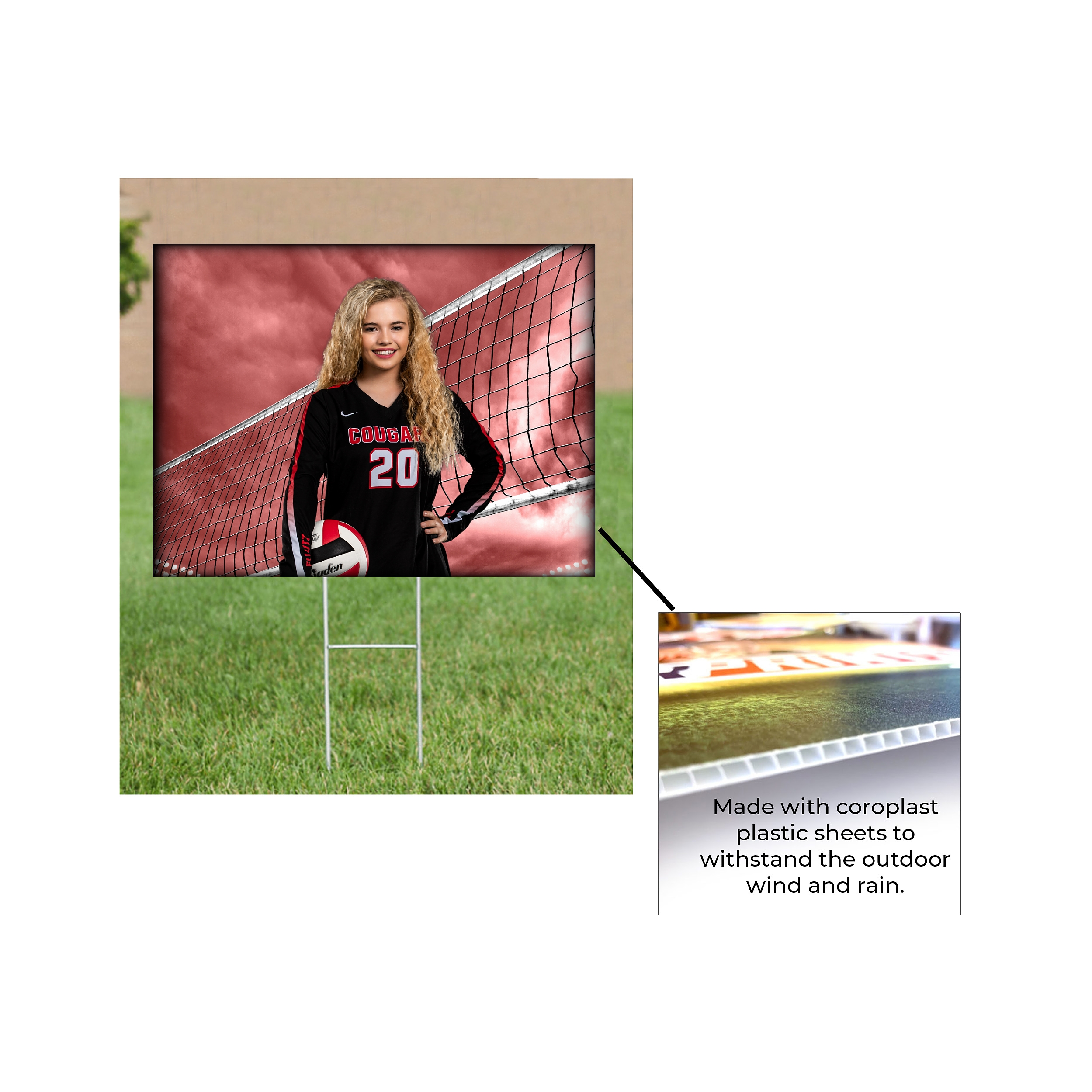 Support your student with a 18×24 yard sign. Made with coroplast plastic sheets to withstand the outdoor wind and rain.