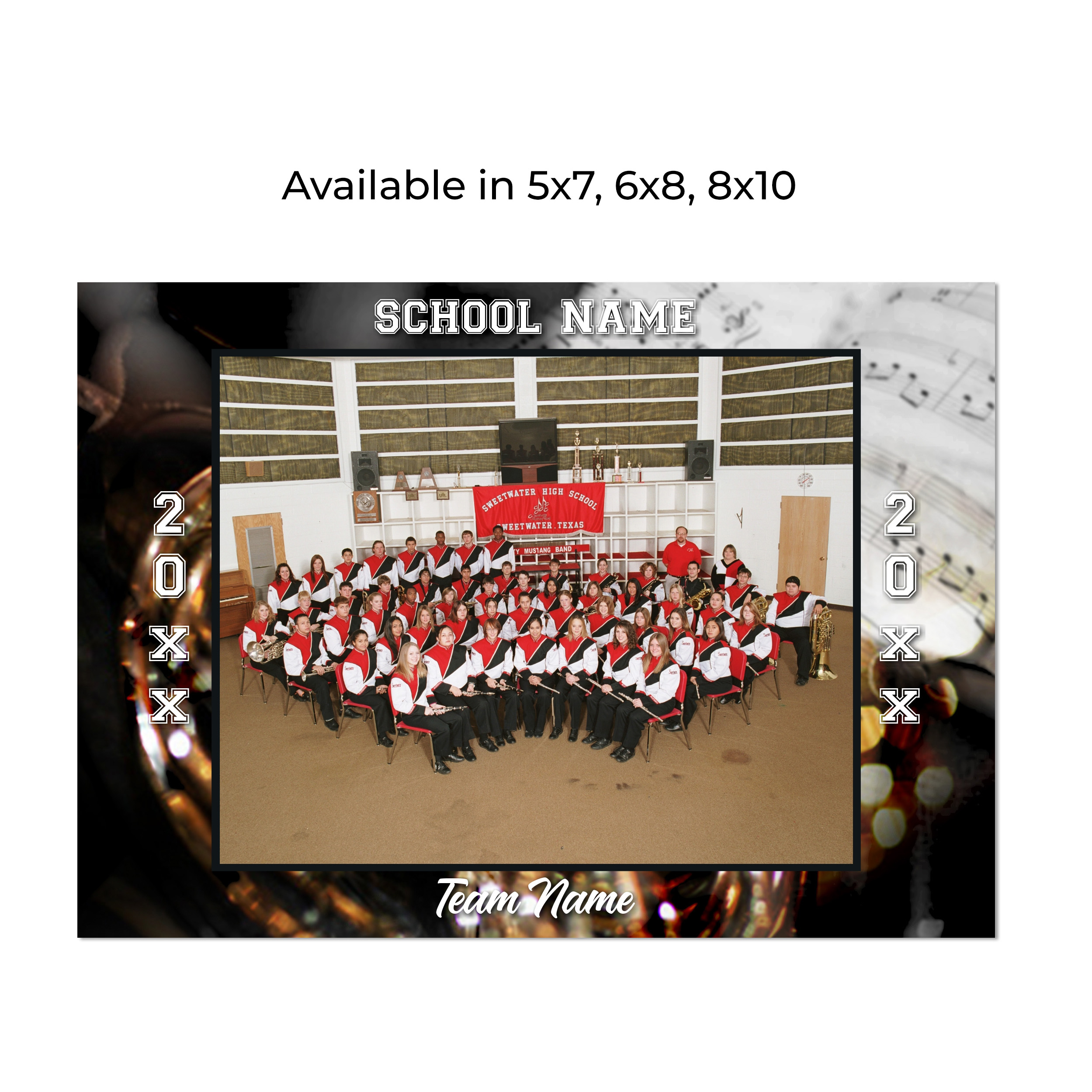This group is customizable by size. The group picture will also display your team name, school name and year. Prices start at .51 each. Contact the lab for more information.