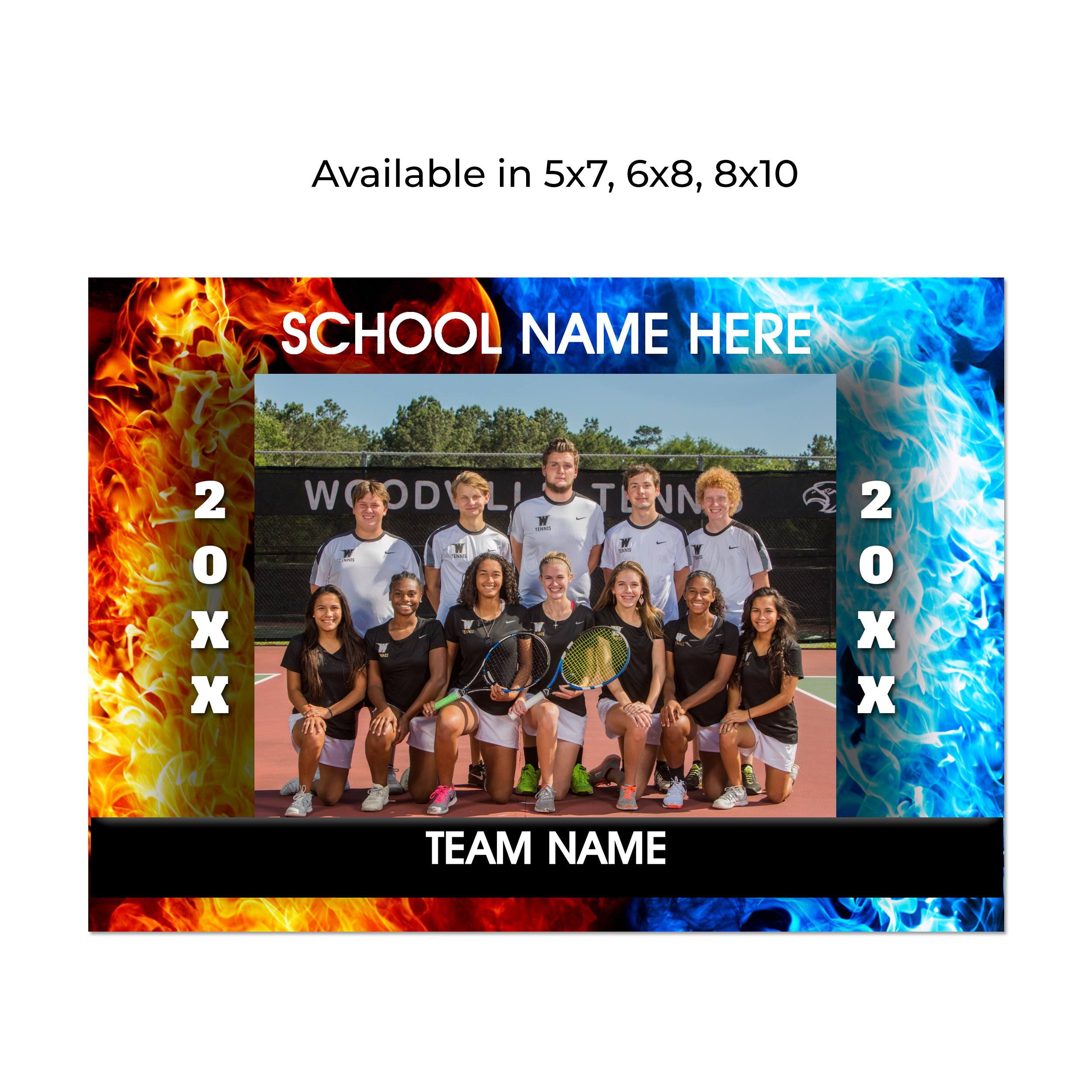 This Fire & Ice group series is customizable by size. The group picture will also display your team name, school name and year. Prices start at .51 each. Contact the lab for more information.