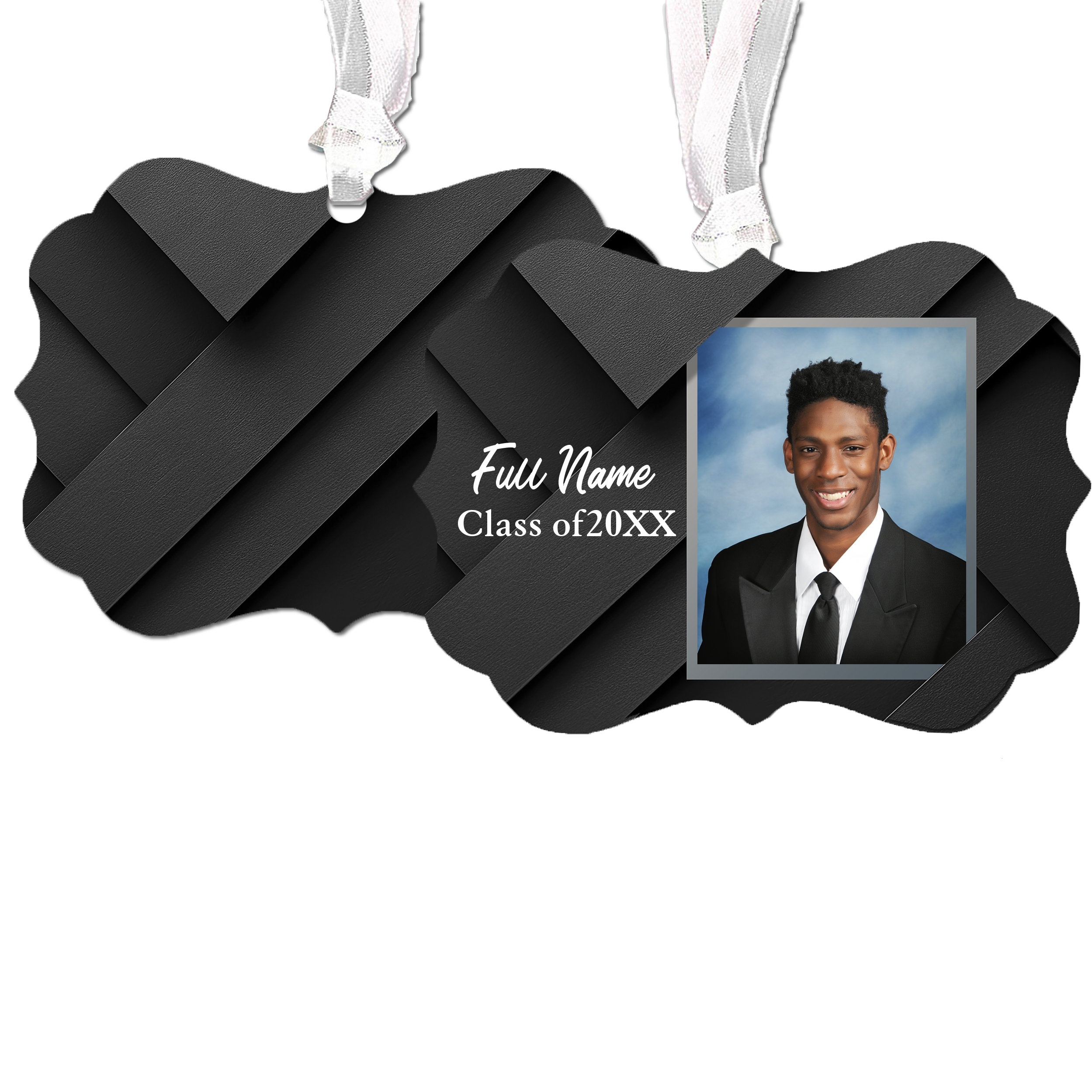 Home » Shop » Scalloped Metal Ornament – Senior Black Tie